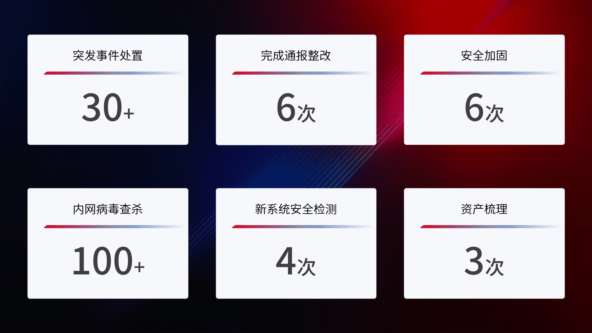网络安全加固与风险管理:通过技术加固手段,,如加强区域隔离,,,,缩减攻击内网横向移动的范围;优化现有网络安全管理制度,,,,降低网络威胁暴露面,,减少被黑客攻击的可能性。。